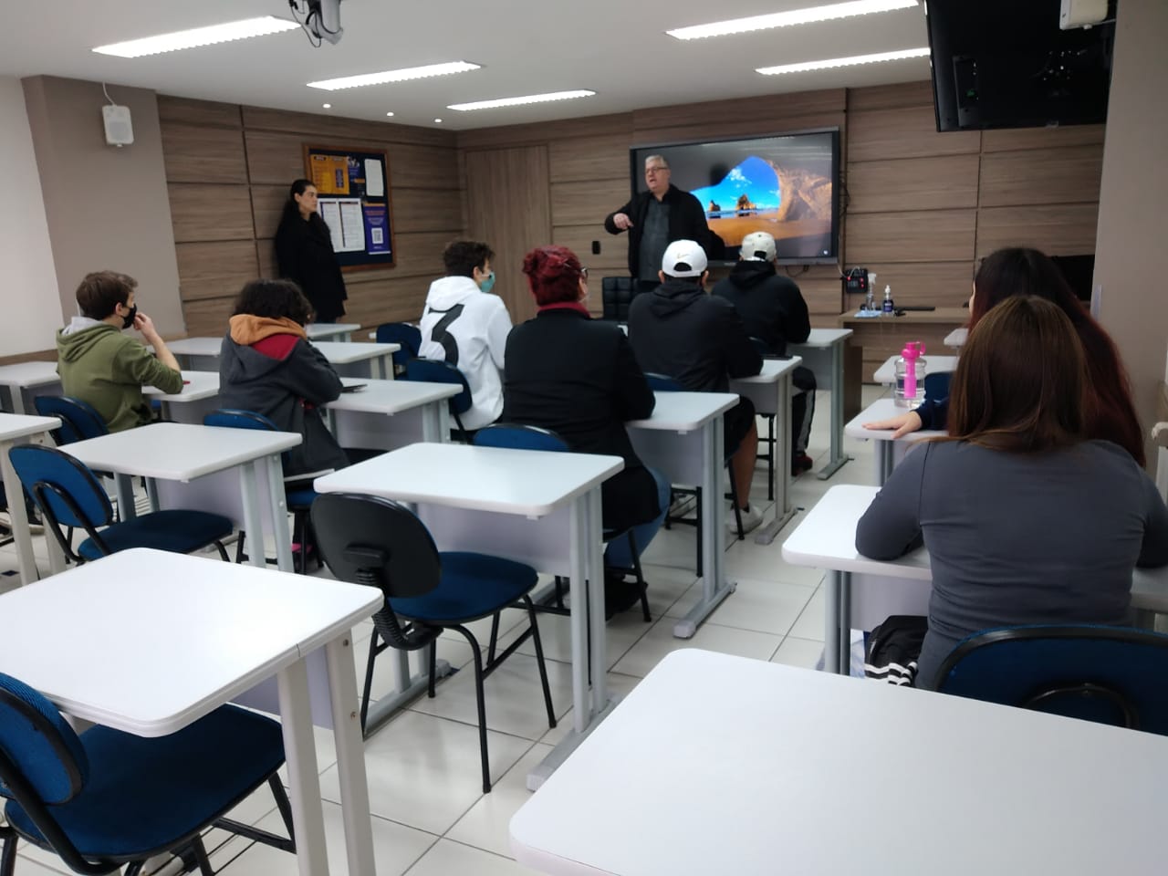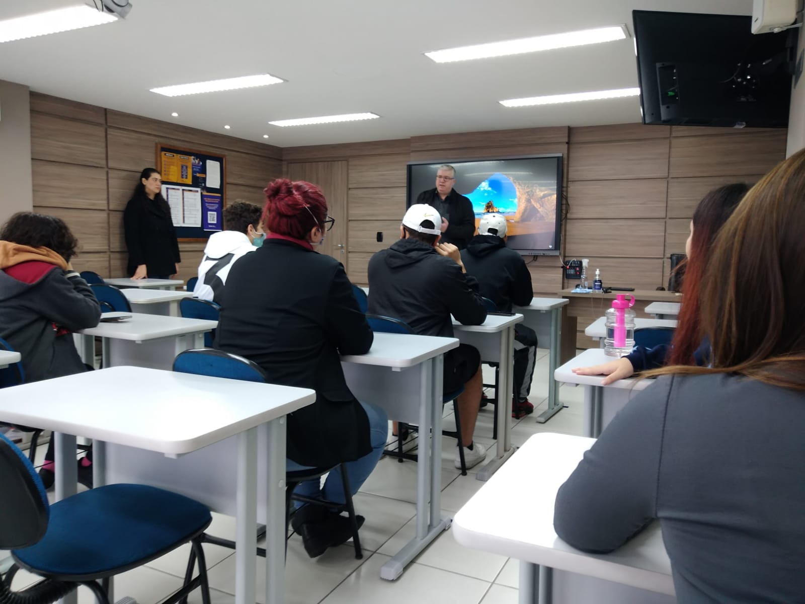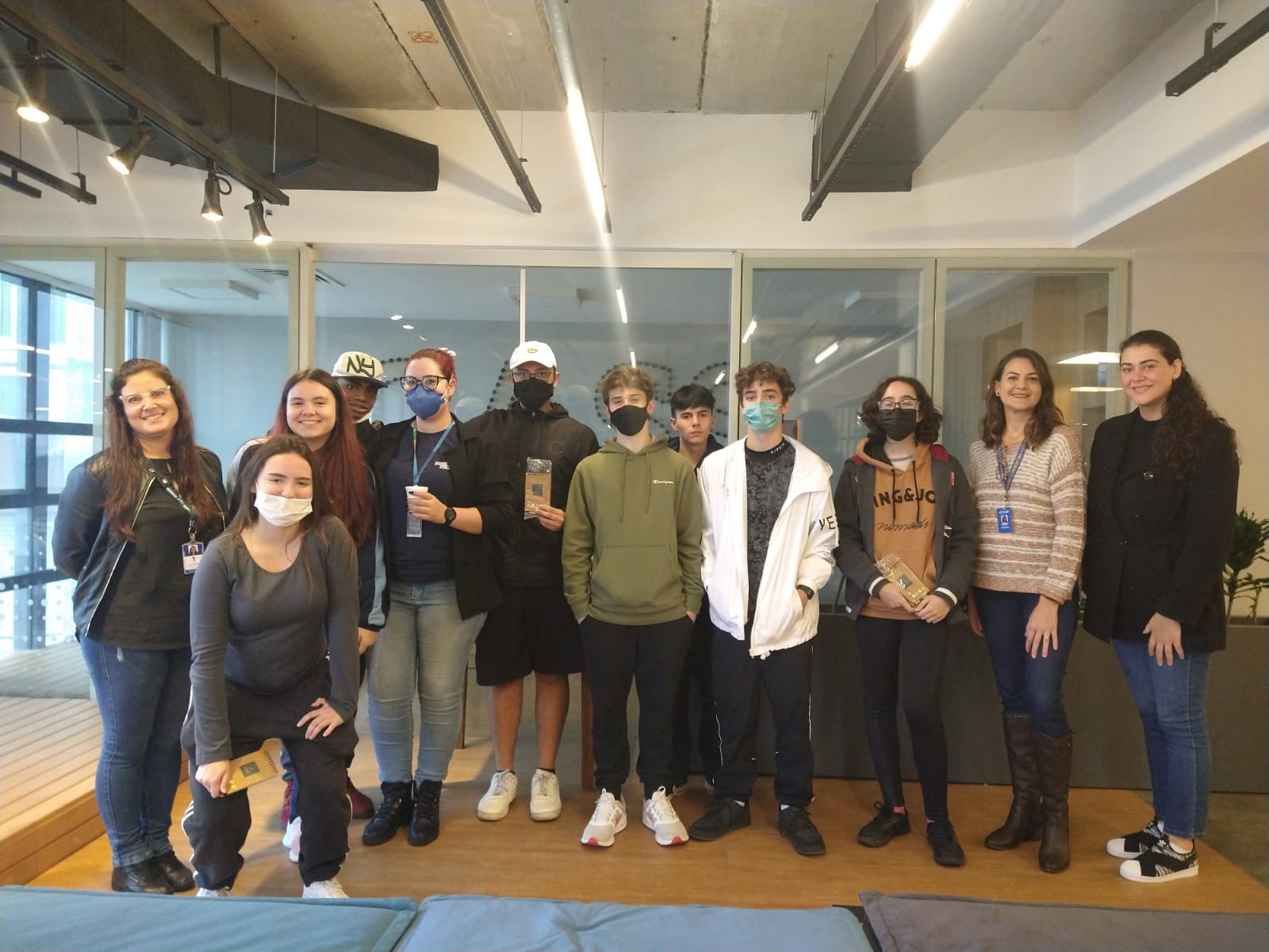 No Tribunal Didático, o Professor Rodrigo Brandalise fez questão de parar a aula que gravava para contar sua trajetória e inspirar os alunos. A visita terminou no décimo primeiro andar onde a turma lanchou e recebeu um presente.