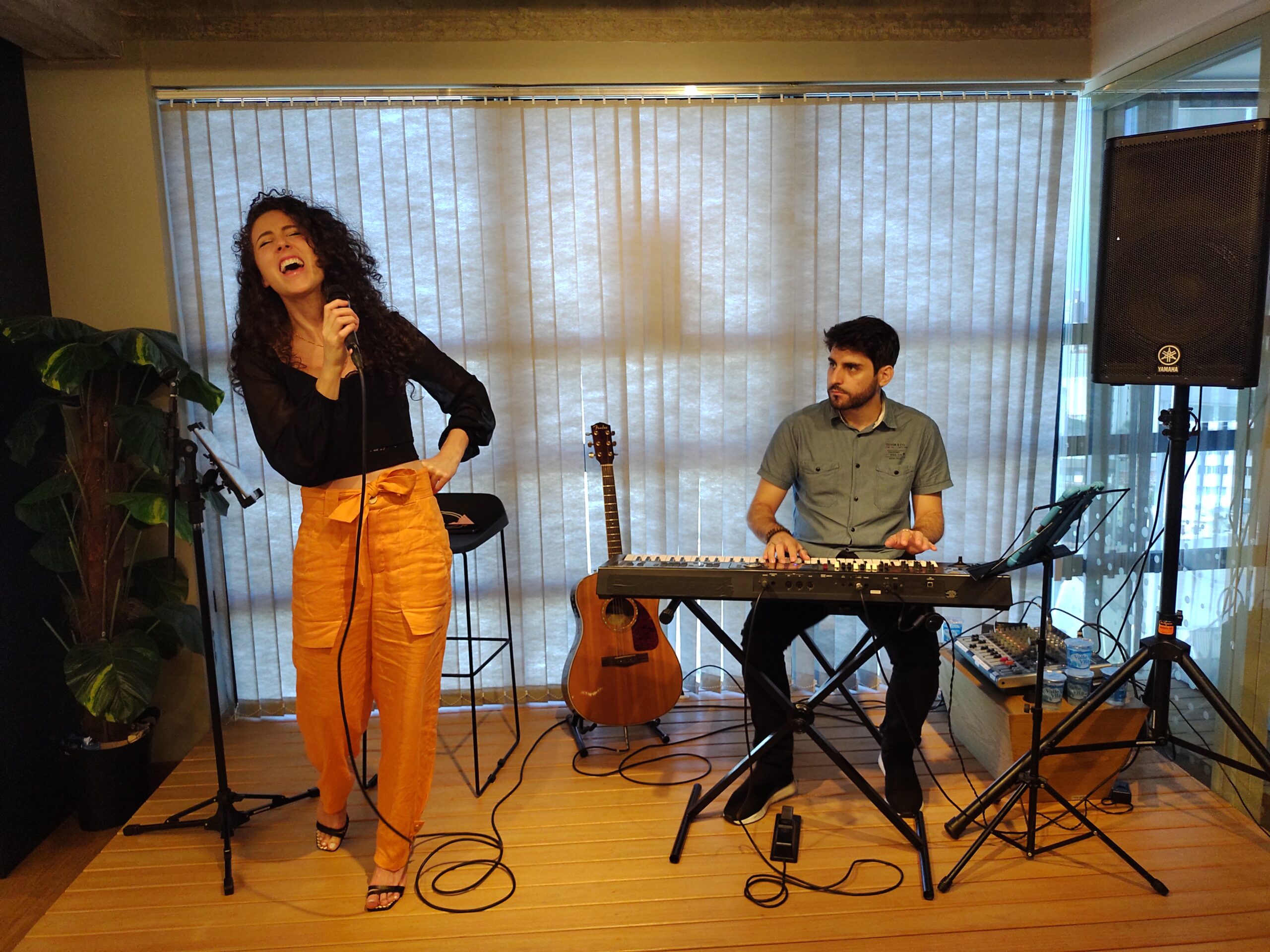 A cantora Laura Dalmás e o produtor musical Cristian Sperandir.