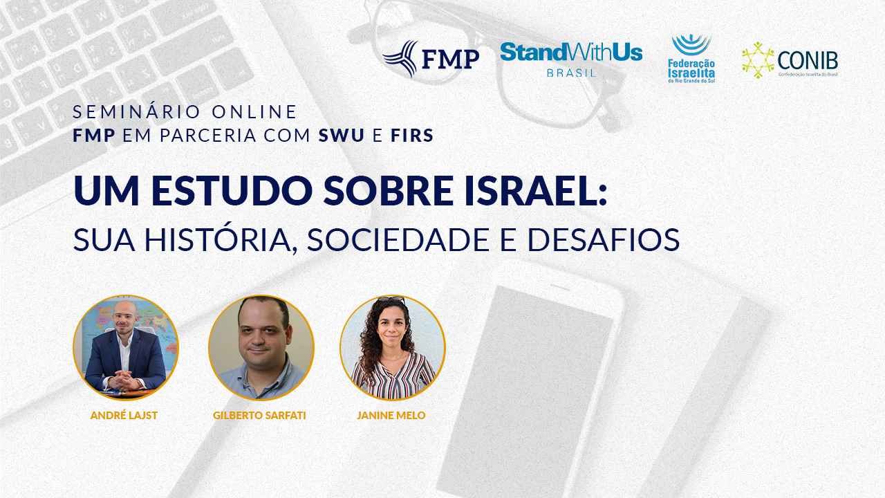 No próximo dia 11/04, ocorre o seminário online “Um Estudo sobre Israel”, que tem o objetivo de promover o conhecimento sobre os aspectos socioantropológicos que compõem o Estado de bem-estar social israelense. O evento inicia às 19h no canal da FMP no YouTube.