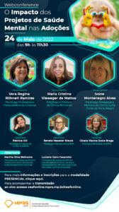 No dia 24 de maio, das 9h às 11h30, o Ministério Público do Rio Grande do Sul (MPRS) promove uma webconferência com o tema O Impacto dos Projetos de Saúde Mental nas Adoções, por intermédio da Promotoria da Infância e Juventude de Porto Alegre e do Centro de Estudos e Aperfeiçoamento Funcional.